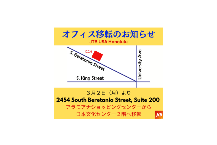 弊社ホノルル支店は、3月2日より新しい場所にて営業いたします。